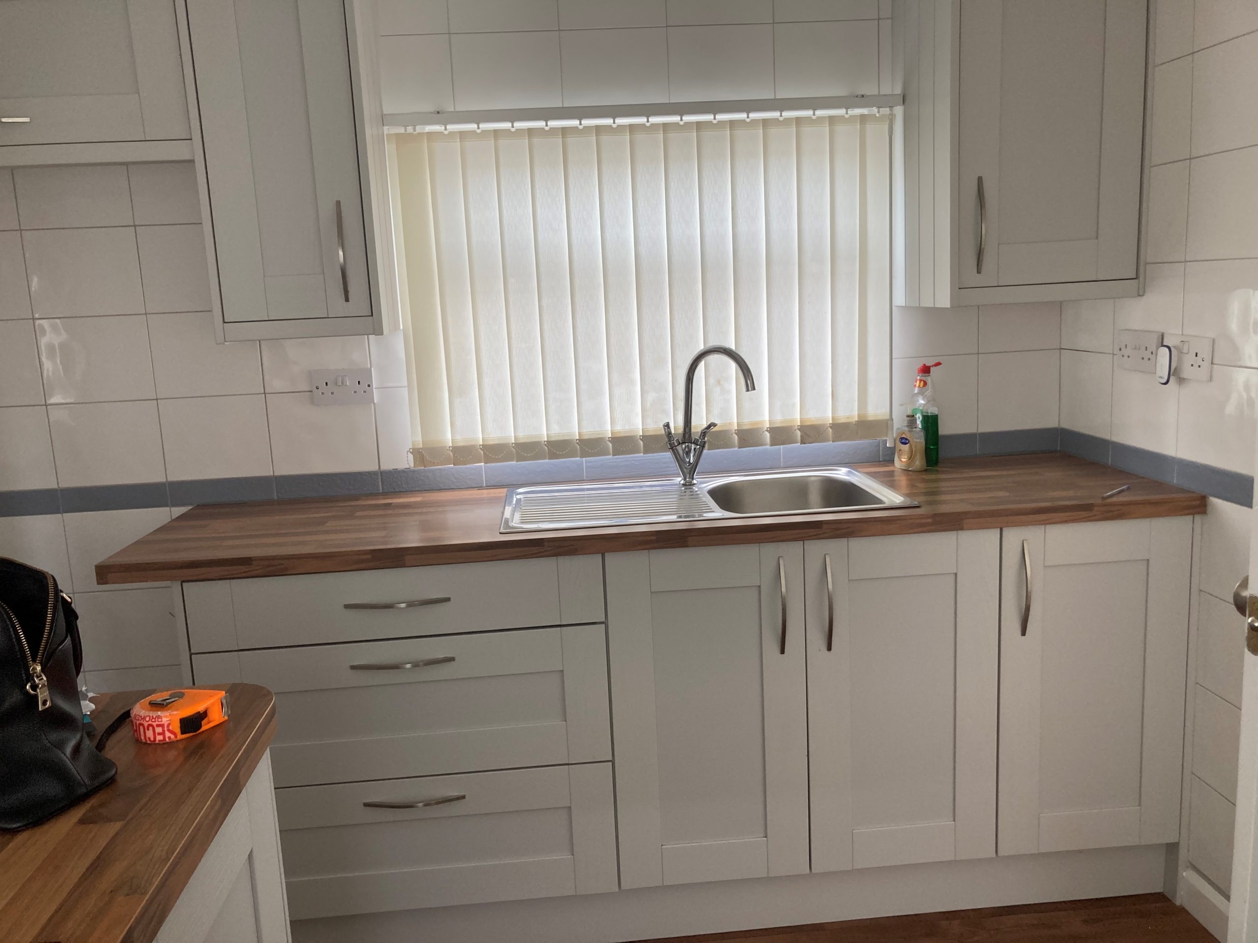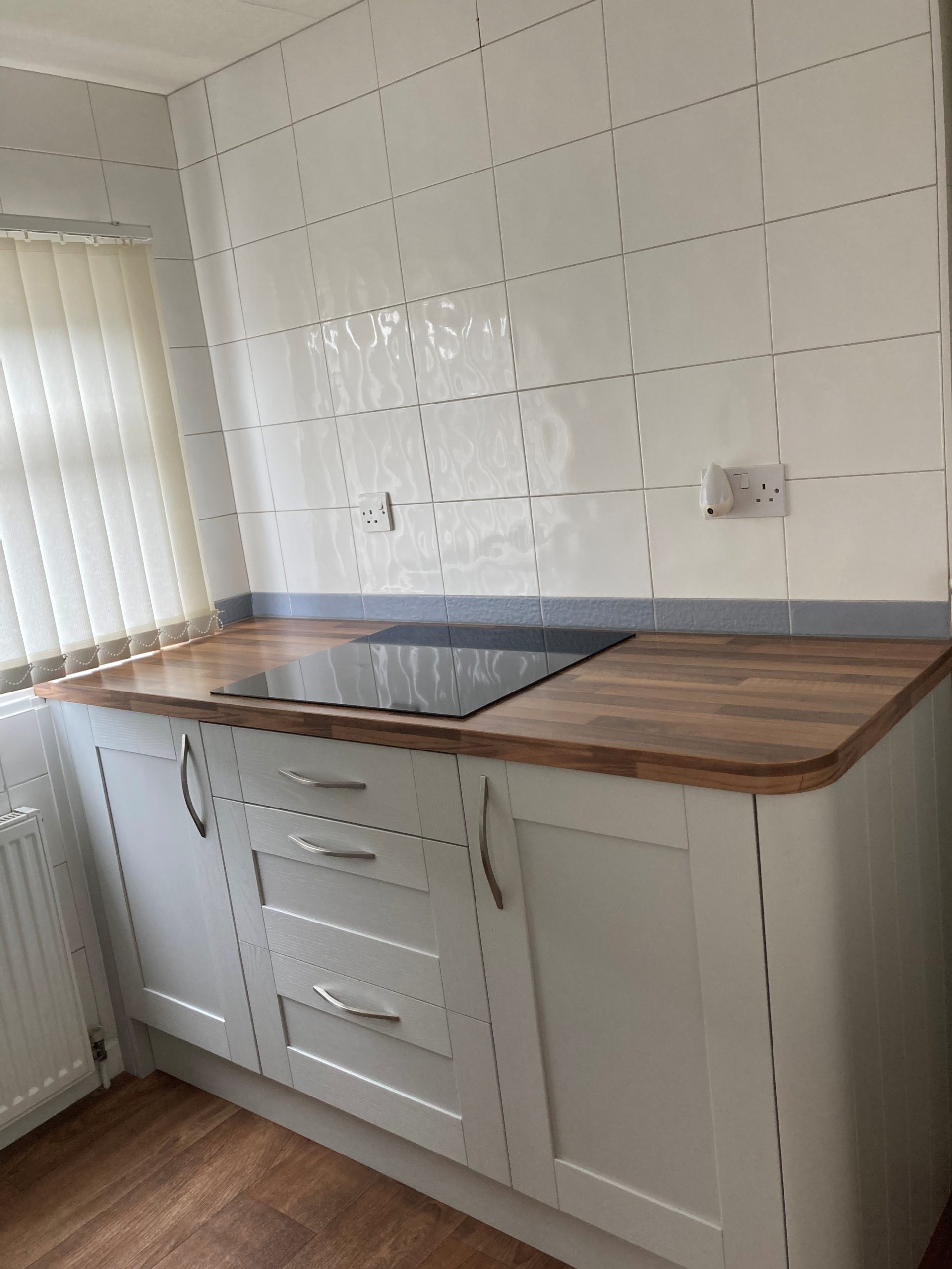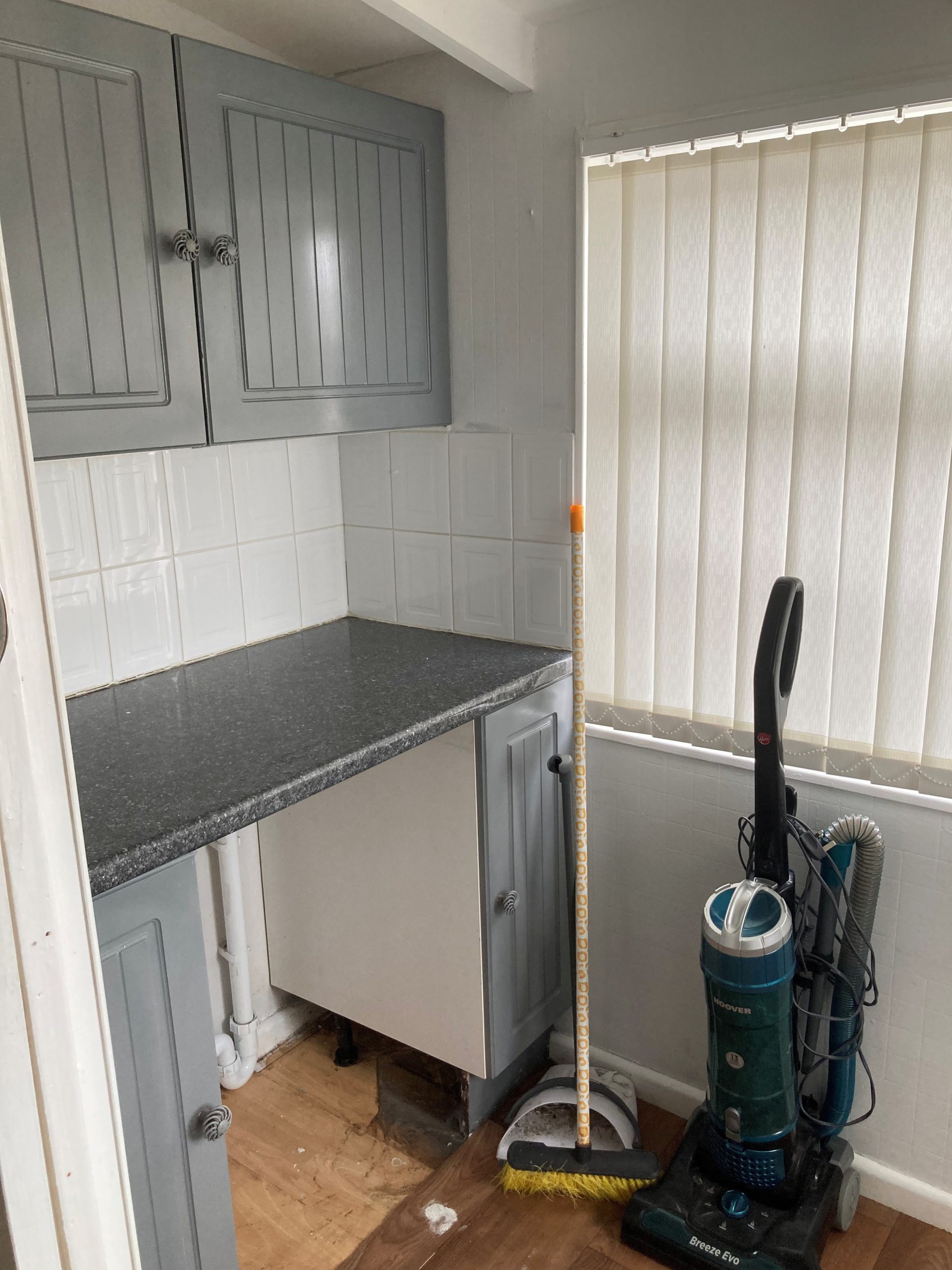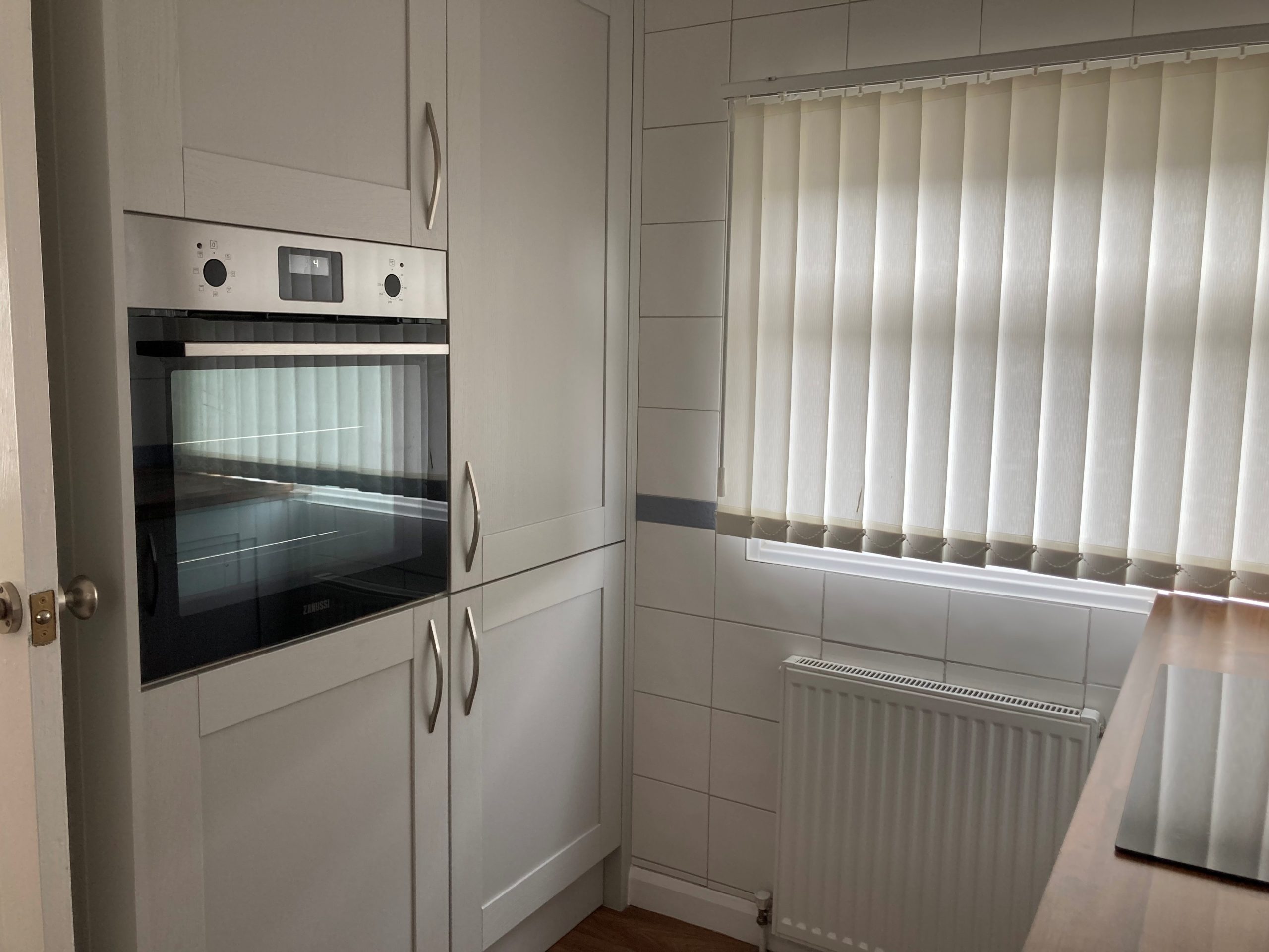 Kitchen in modern grey units with oven/hob. Newly serviced boiler.